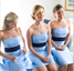 DRESS SHOWN: Varied Styles in Sky Blue/Navy & Lime Sashes
