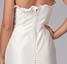 Sweetheart neckline gown with princess seams. Trumpet skirt fitted through hips. Interior features hand-sewn corset and crinoline in skirt. Full covered buttons down back. Shown in Pearl silk shantung with 1" ruffle hem along bust-line.